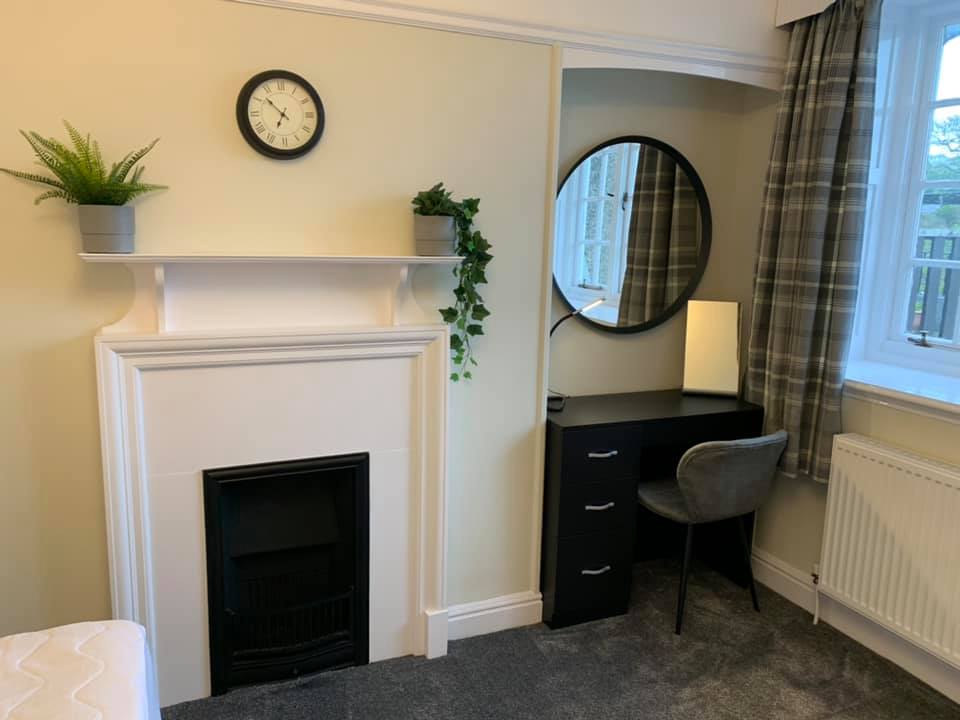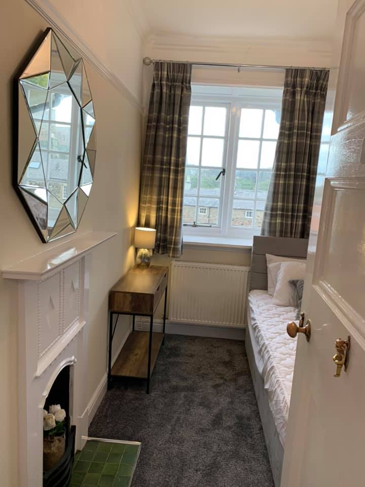 Originally, the Maid’s room, this large twin or superking bedroom provides a view of the farm and St Aiden’s church.