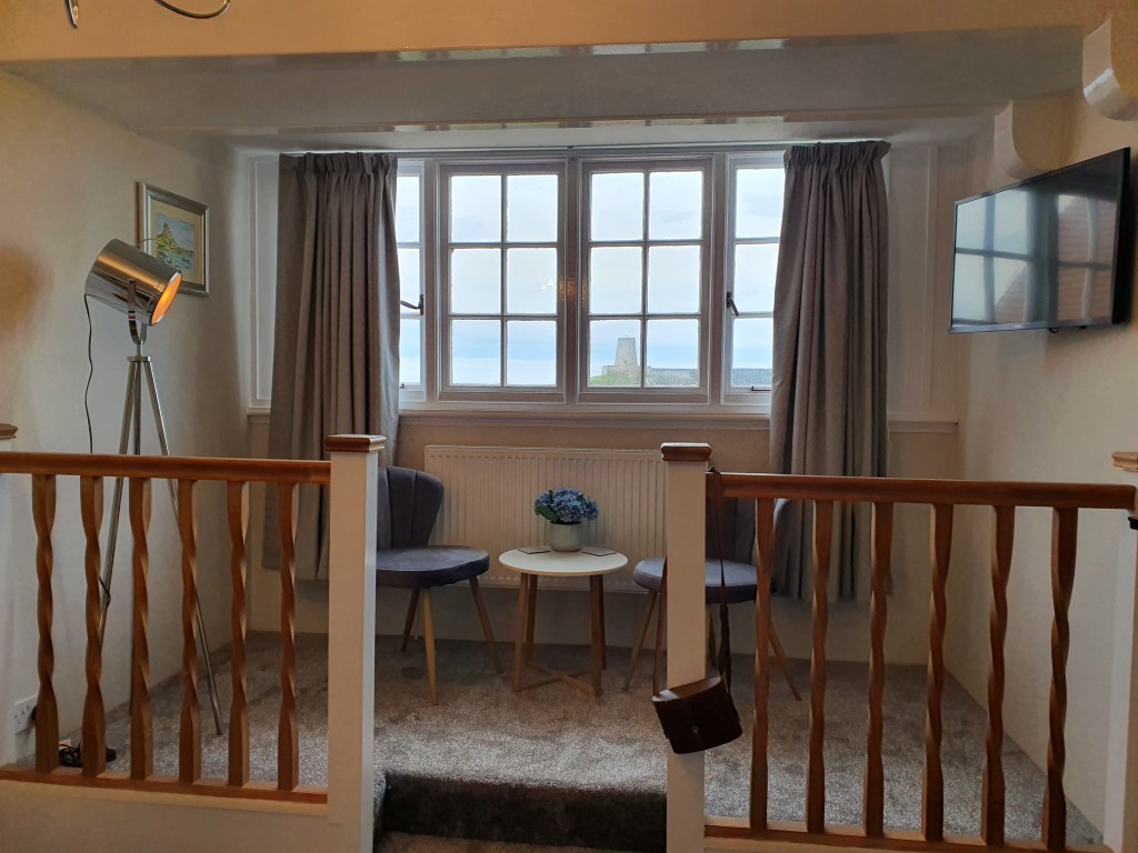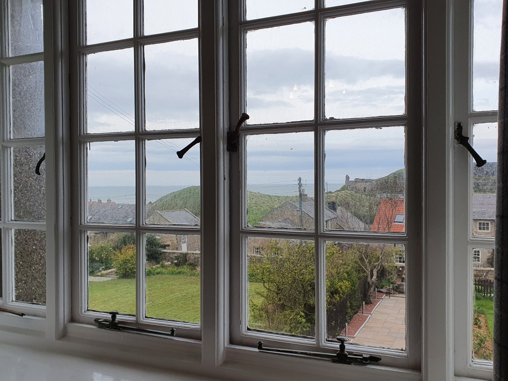 A stylish single bedroom with fantastic views of the sea and Bamburgh castle.
