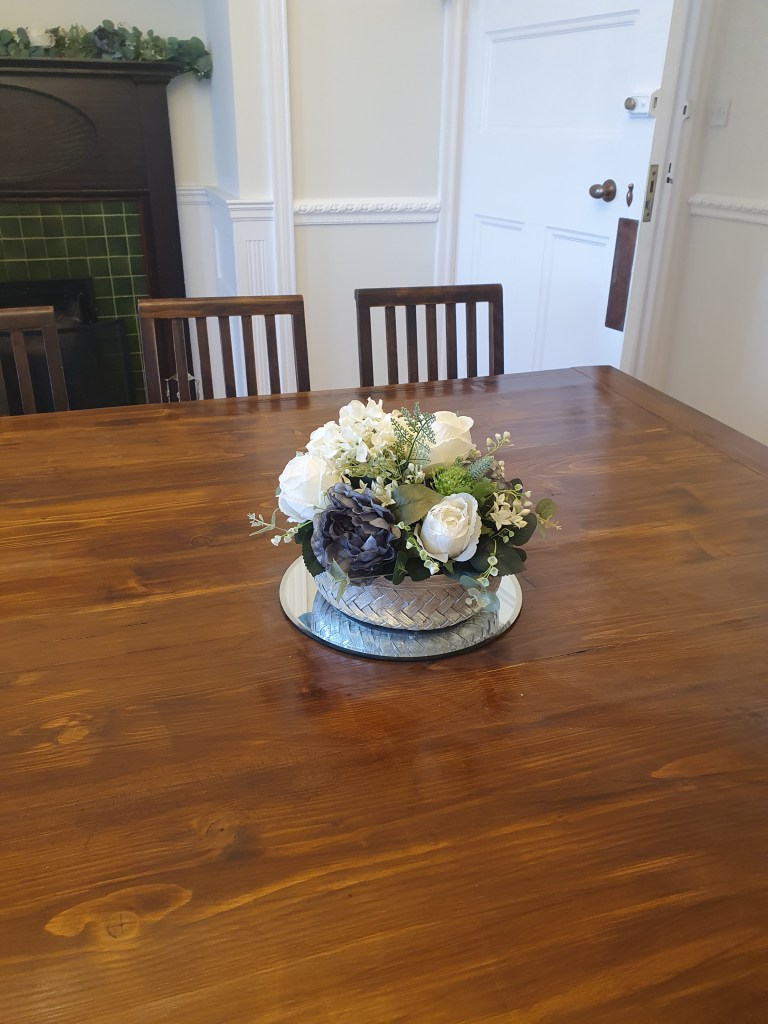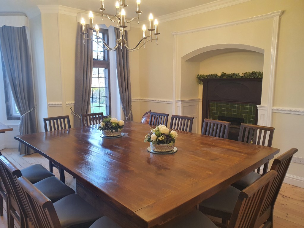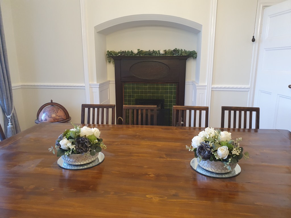 The dining room, one of our main feature rooms, offers dining for up to 12 people on our custom made large dining table. We also offer an additional matching custom built table that seats 4 people.